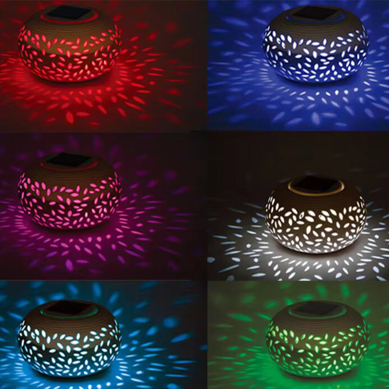 decoration waretproof ceramic jar solar light led color changing table lamp